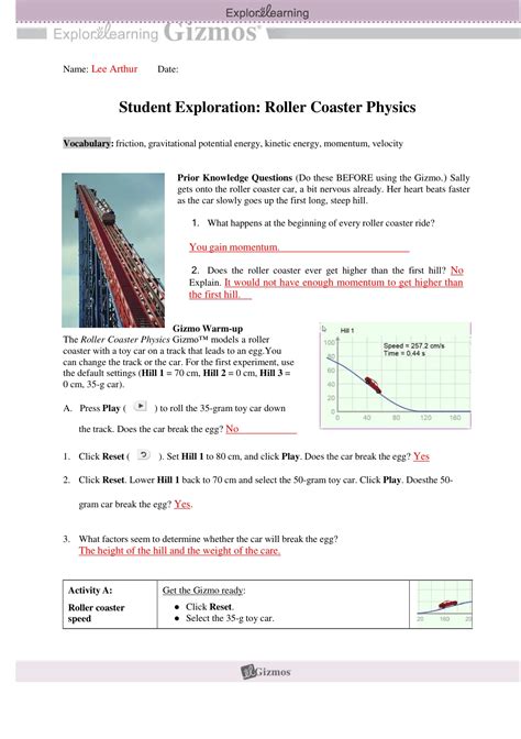 Read Answer To Student Exploration Roller Coaster Physics Kindle Editon