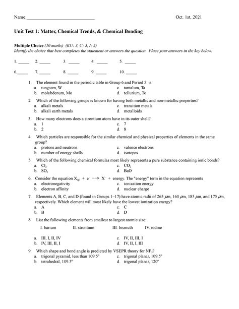 Read Chemistry Unit 1 Test Answers Doc